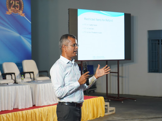 The South India Corrugated Box Manufacturers’ Association (SICBMA), Coimbatore Chapter, organized a seminar on GST Inverted Duty Structure Refund for its members. The session included an introduction by CA S. Saravanan and a presentation by CA K.C. Senthil Kumar, covering GST refund procedures, compliance requirements, and key challenges faced by manufacturers. The event concluded with networking and dinner hosted by M/s. Shree Sadha Mills, Palladam.